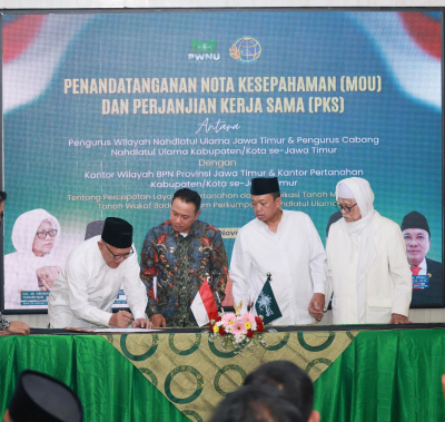 Selain itu, Perjanjian Kerja Sama juga ditandatangani antara Kantor Pertanahan (Kantah) dan Pengurus Cabang NU (PCNU) se-Jawa Timur.