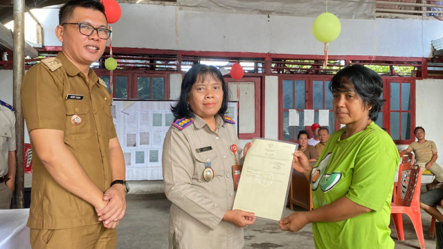 Kepala Kantor BPN MINSEL Serahkan 69 Sertipikat Elektronik PTSL di Kelurahan Buyungon