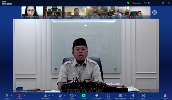 Jakarta, CITAWAYA.ID – Menteri Agraria dan Tata Ruang/Kepala Badan Pertanahan Nasional (ATR/BPN), Nusron Wahid, menyampaikan arahan secara daring kepada jajaran Kementerian ATR/BPN di wilayah Maluku Utara dan Sulawesi Utara pada Kamis (19/12/2024).
