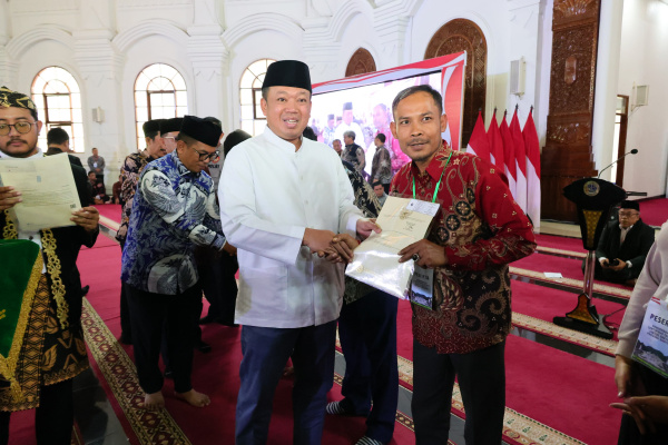 Dari jumlah tersebut, 12 sertipikat diserahkan langsung kepada perwakilan penerima dalam acara yang digelar di Masjid Raya Al-Bantani, Kawasan Pusat Pemerintahan Provinsi Banten (KP3B), Kota Serang.