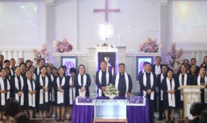 Acara ini turut dihadiri oleh Ketua Badan Pekerja Majelis Jemaat (BPMJ) GMIM Yordan Lewet, Ibu Pdt. Renny Mamusung, M.Th., para pendeta, pelayan khusus, penasehat jemaat, tokoh masyarakat, serta anggota jemaat.