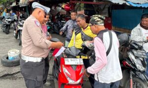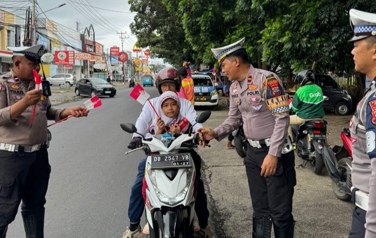 Polres Bitung Bagikan Bendera Merah Putih dalam Rangka Memperingati Hari Kemerdekaan RI ke-80 melalui satuan lalulintas