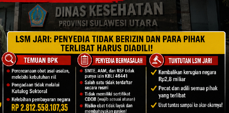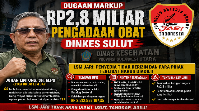 Manado, Citawaya.id – Temuan Badan Pemeriksa Keuangan (BPK) mengungkap dugaan Mark Up serius dalam pengadaan obat di Dinkes Sulut dengan selisih anggaran mencapai Rp2,8 miliar. 27/04/26